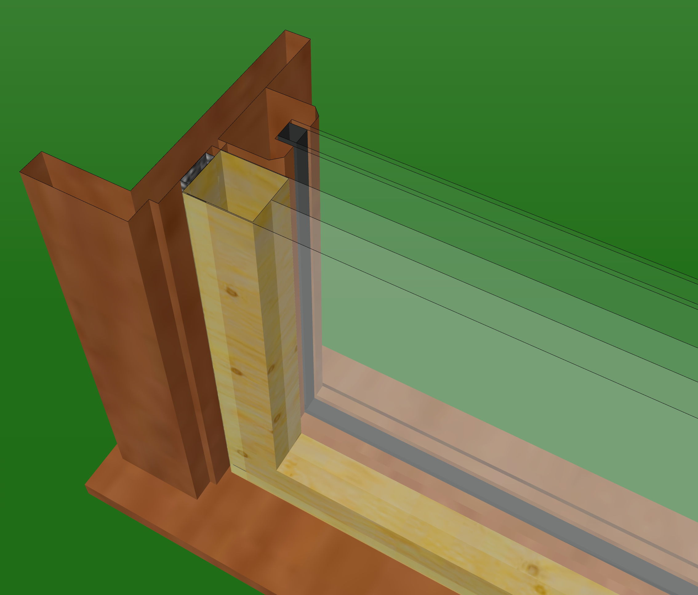 We make interior storm windows in two pane and three pane versions. The former is more common, and will suffice for the majority of applications. The latter is unique to us, and is useful when either 1) The window requires a storm with stronger connection to the jams (skylights, for example) 2) The heat loss through the window is particularly great (e.g. if the window is single pane), 3) For skylights, which are a more significant hole in the insulation, and benefit from the more robust weatherstripping, 4) Thermal efficiency is of supreme importance, as for a Passivhaus or zero-energy house. The triple pane window is thicker (about 1½ inches) so the space where it sits needs to be greater. A wall made with 2" x 6" stud wall is likely to be sufficiently wide to hold a triple pane interior storm. These windows also come with a 1" wide (½" thick), UV resistant weatherstrip to increase the insulation value there as well.